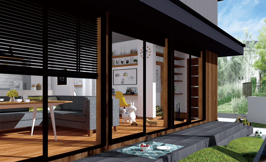 広く遊びたいときはテラスの長く伸びる